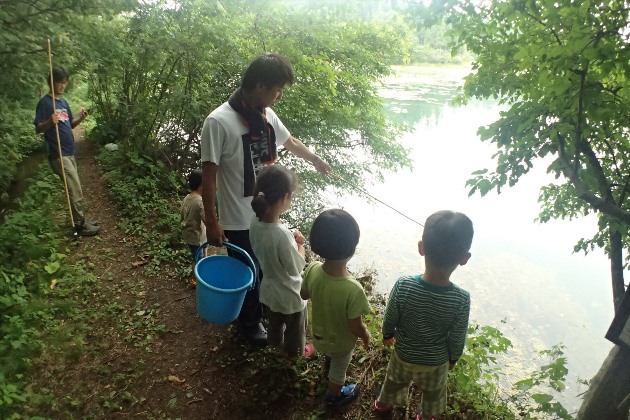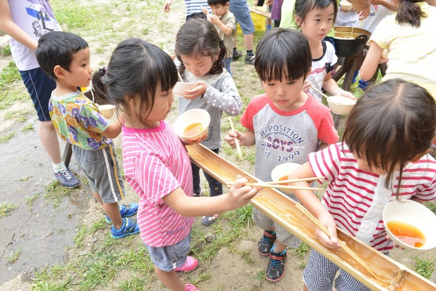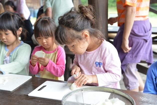 このキャンプには、園児の他に卒園した小学生も何人か参加しています。キャンプ経験者の先輩たちが後輩たちを優しくサポートしてくれるのもいいところです。