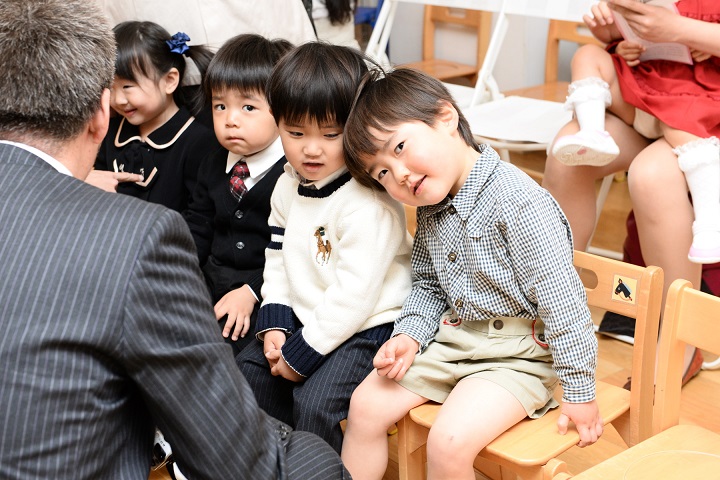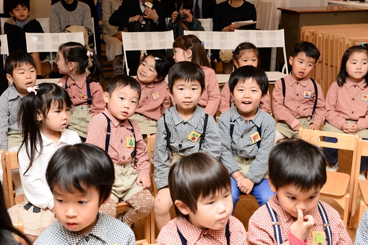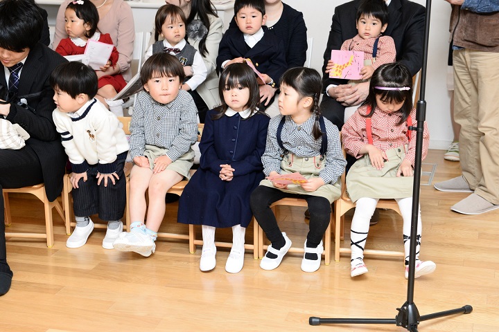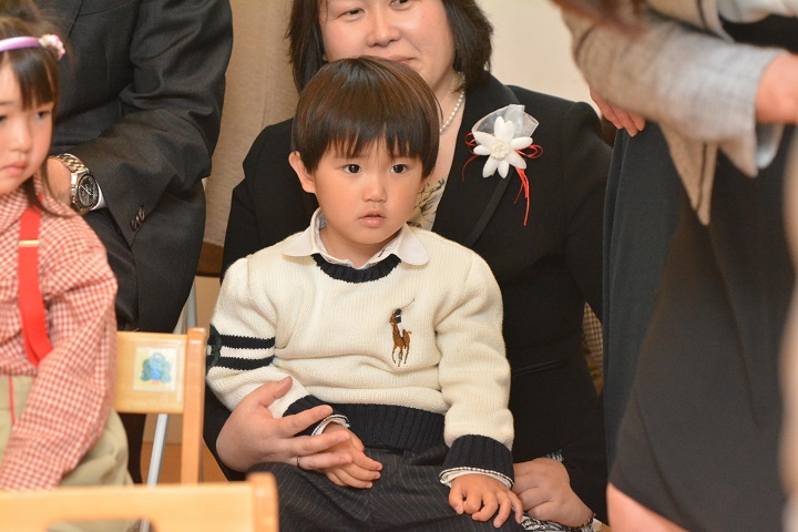 期待や不安を胸に子ども達が登園してきました。 3歳児の子ども達は、上のクラスにいく喜びを胸に嬉しそうな顔をしていました。 4,5歳児の子ども達は、新しいお友だちが来ることの喜びと自分たちが園の事を教えてあげたい気持ち、下の子がいっぱい出来る不安など様々な表情が見られました。 お母さん、お父さん達もわが子の成長に感動している姿、子どものを見守る暖かい眼差しで参加してくださいました。   先生からお名前を呼ばれると元気に返事をする子や照れてしまう子がいましたが、みんな自分の名前が呼ばれるととても嬉しそうな表情をしていました。 在園児の子ども達は元気に入園児の子ども達にお歌のプレゼントをしてくれました。   新しい1年が始まり、吉見光の子で様々な体験をして、お友だちといっぱい遊んでケンカして、笑って、泣いて、楽しい生活を送って欲しいと願っています。 早速、田植えやおいも植えなどが待っています。 子ども達の様子が楽しみです。