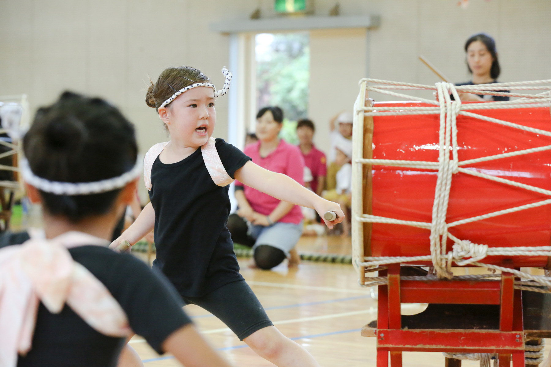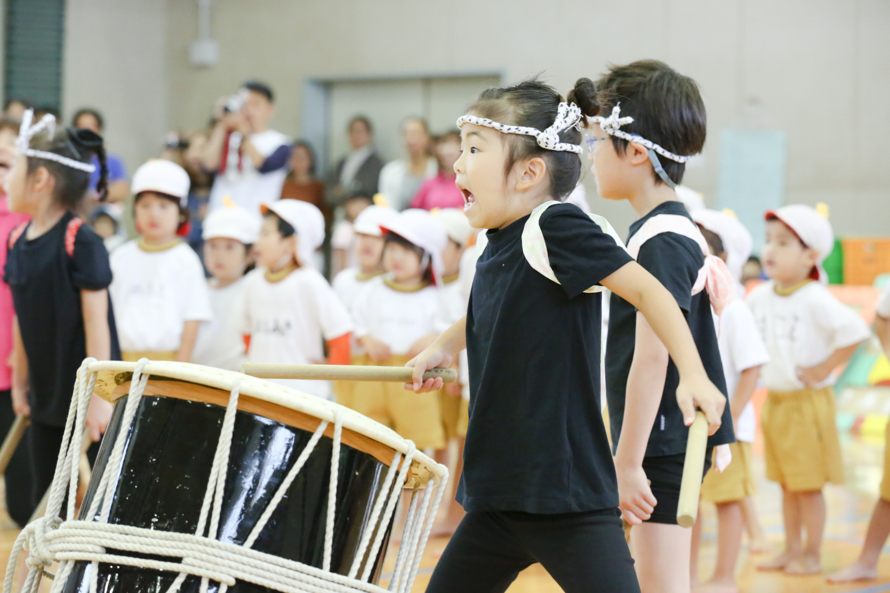 オープニングで、会場中を感動させた、年長児の太鼓の演技。