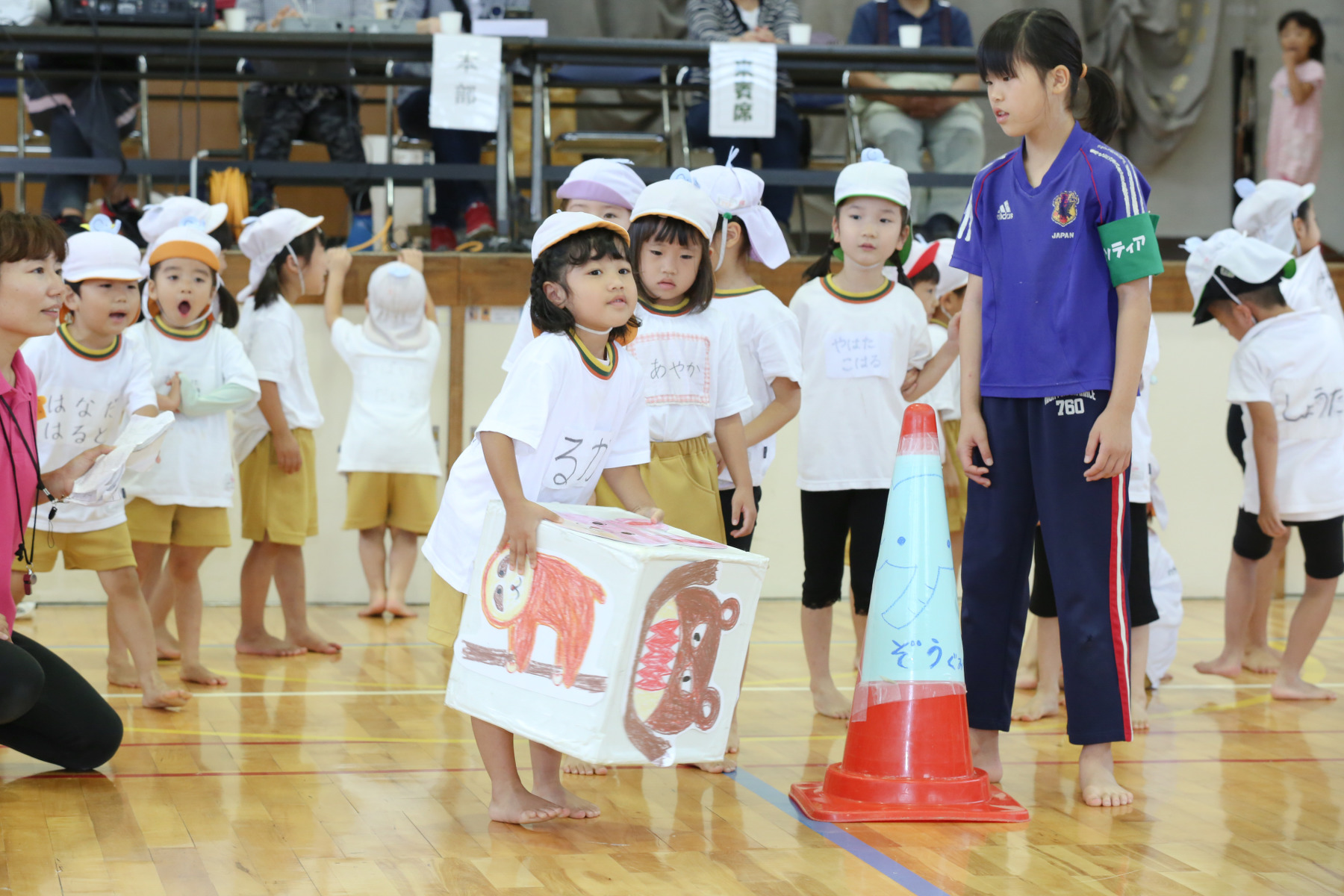 小学生達は競技の小道具を持ったり、小さな園児に合わせて、障害物の高さを調節してあげたり、さりげなく手助けをしてあげたり、子供とは思えない機転の利き方、優しい気配りの数々・・・!