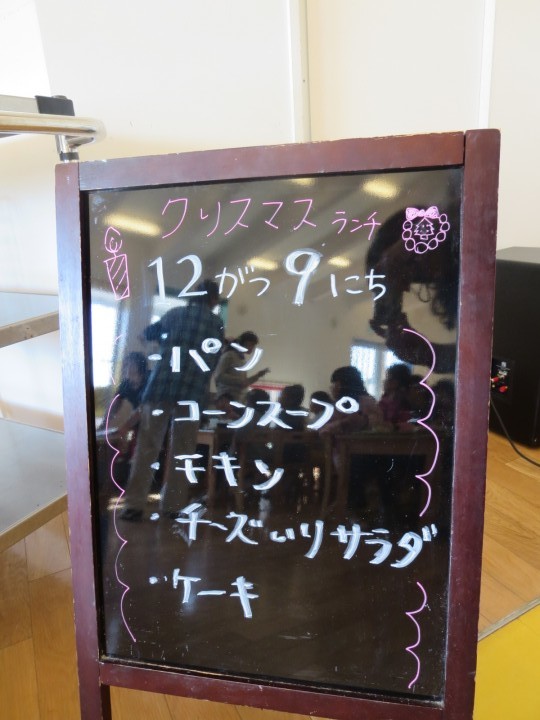 クリスマス祝会の行われる今日、給食の先生が、クリスマス特別給食を用意してくださいました。