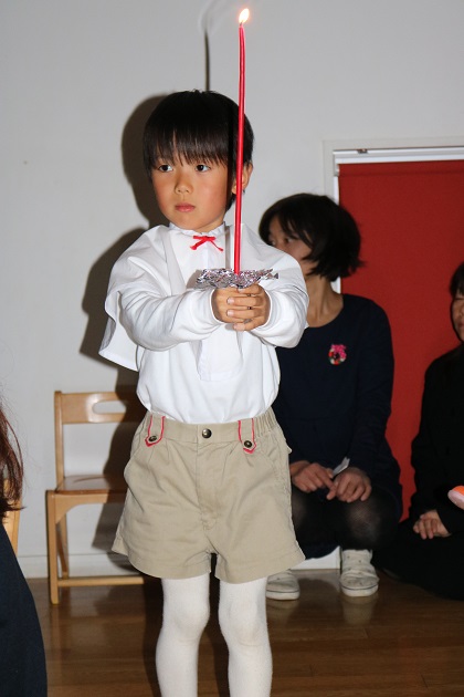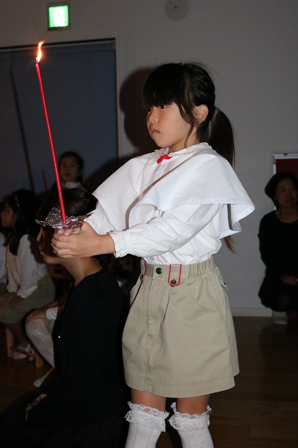 両腕をしっかり伸ばして、ろうそくを捧げ持ちます。