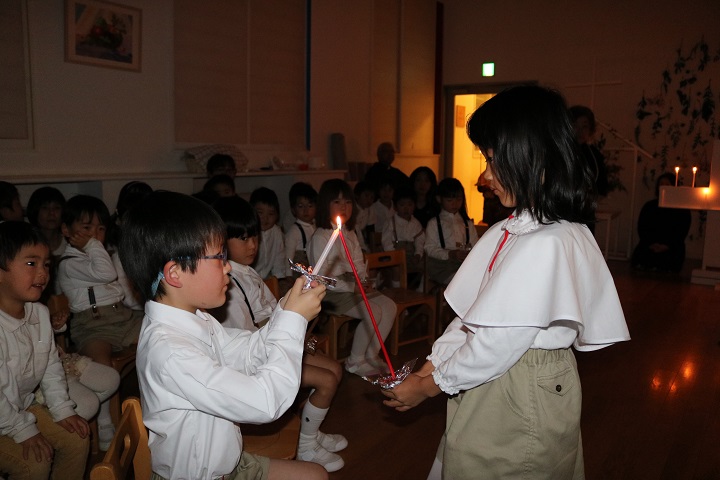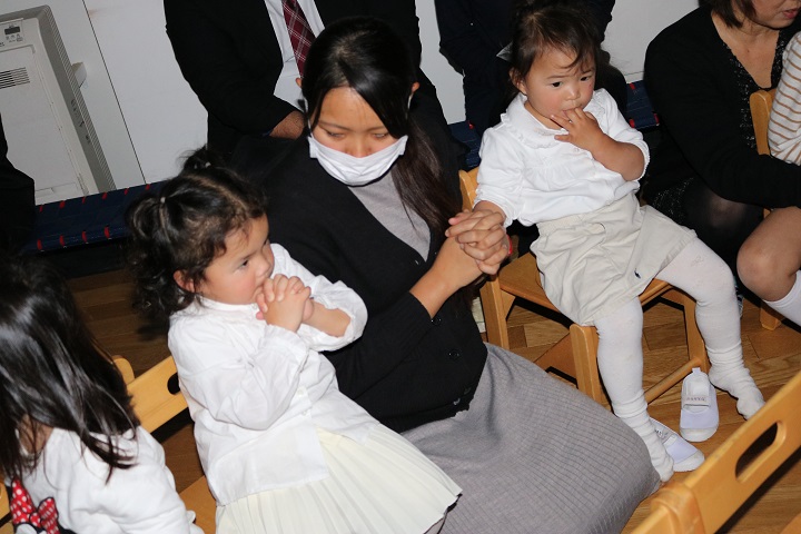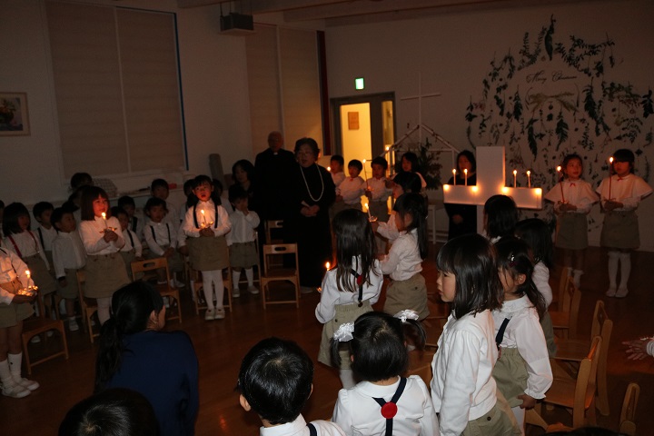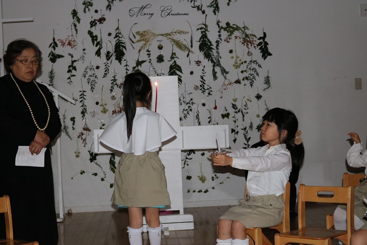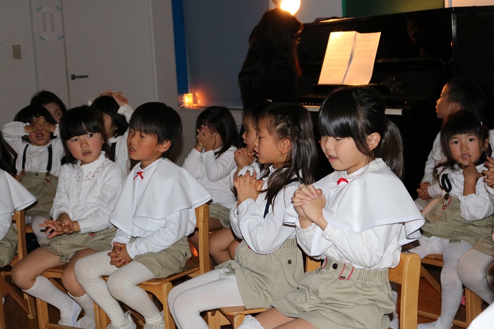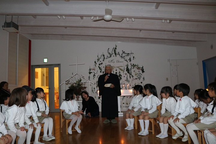 園長先生がイエス・キリストの誕生のお話とお祈りをしてくださいました。