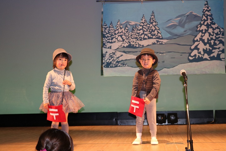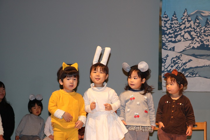 年中児さん達の劇は、場面の数もセリフも多く、難しそうな内容でしたが