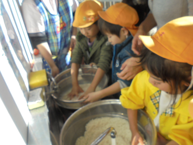 むらさきさん達(年長さん達)がお米を研ぎます。