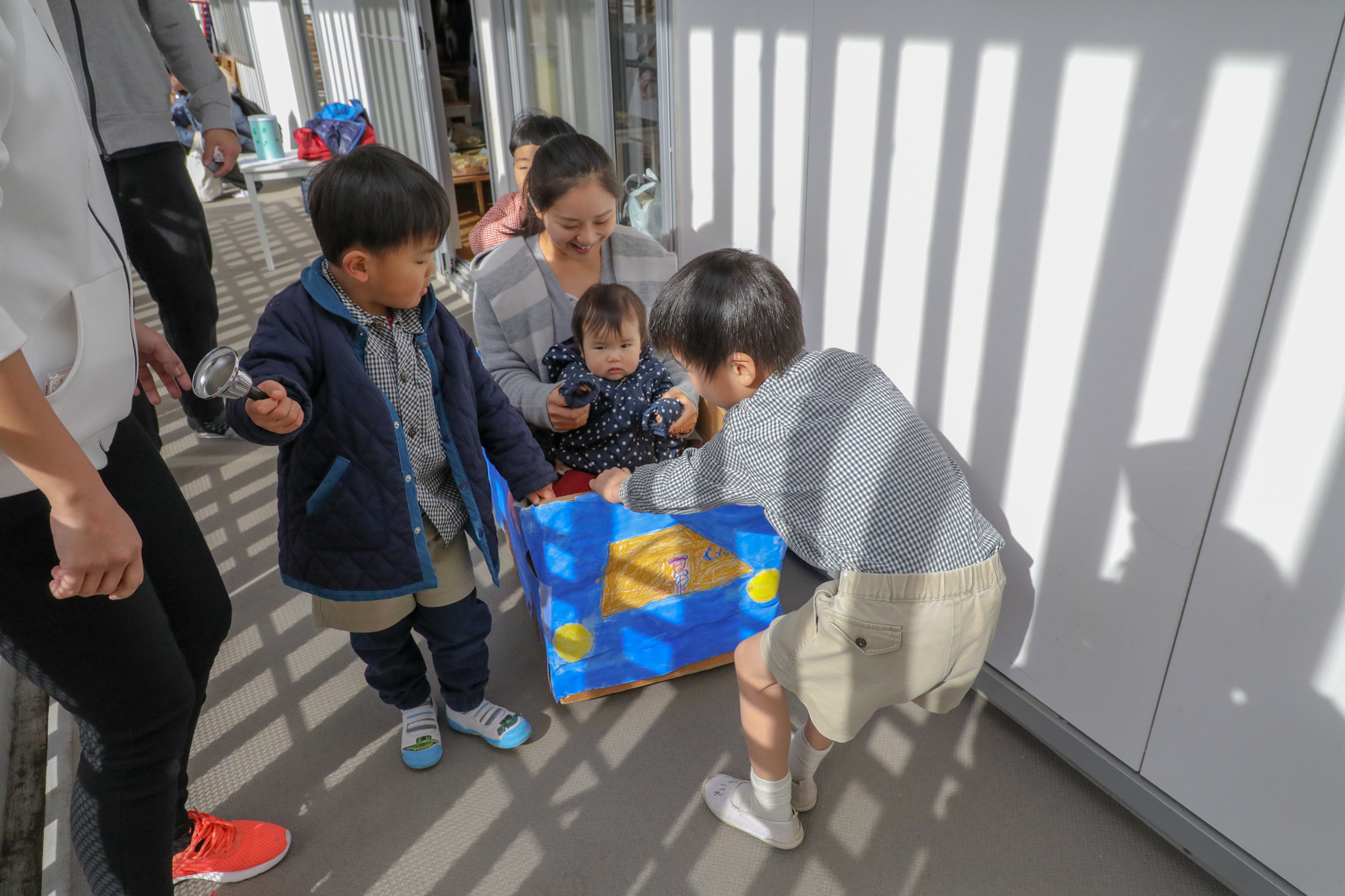 もちろん、ぴんくちゃん(3歳児)も頑張っていましたよ!『〇〇屋さんでーす!いらっしゃいませー!』と