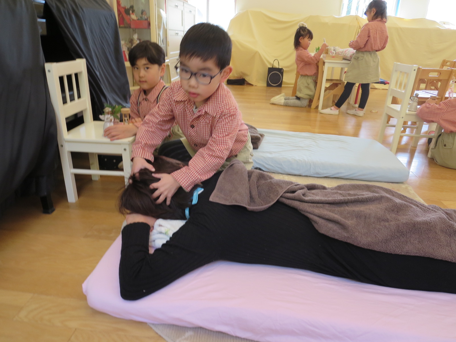マッサージ屋さん。整体師の先生に教えてもらった技でがんばりました!