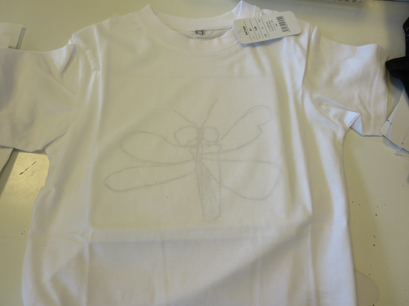 Tシャツにの下に入れて移し描きします。