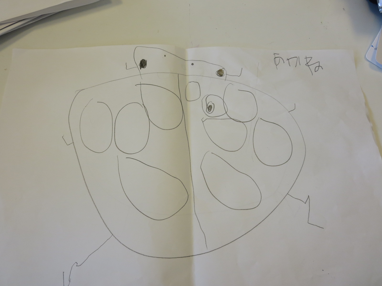 写真のテントウムシよりずっと大きく描いて