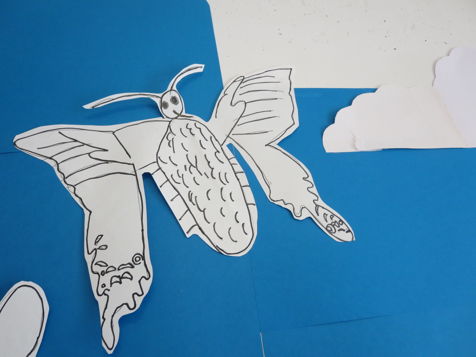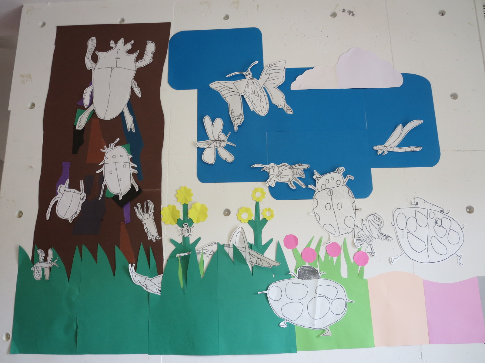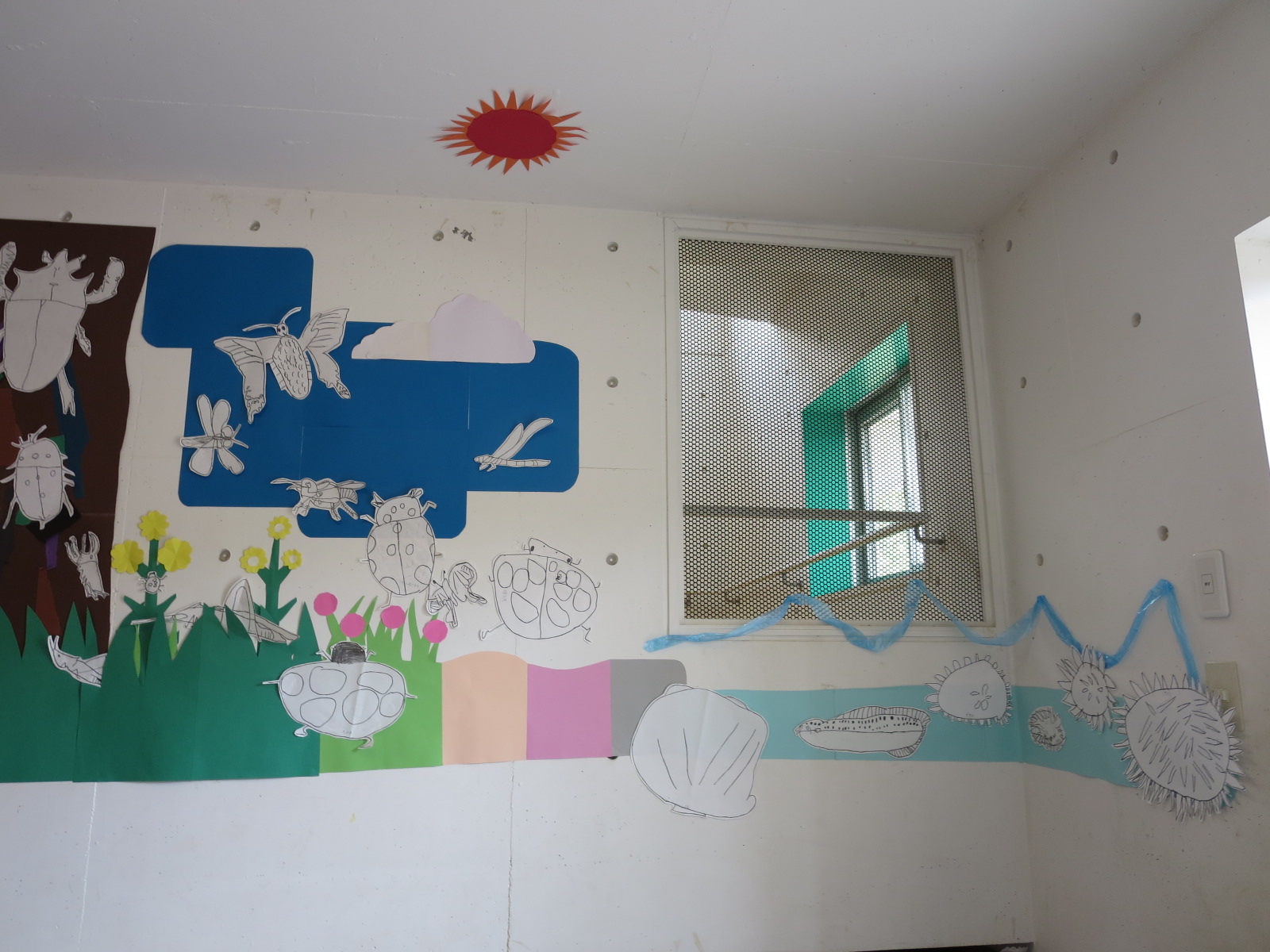 後日、先生がみんなの下絵を使って壁面飾りを作ってくださいました。