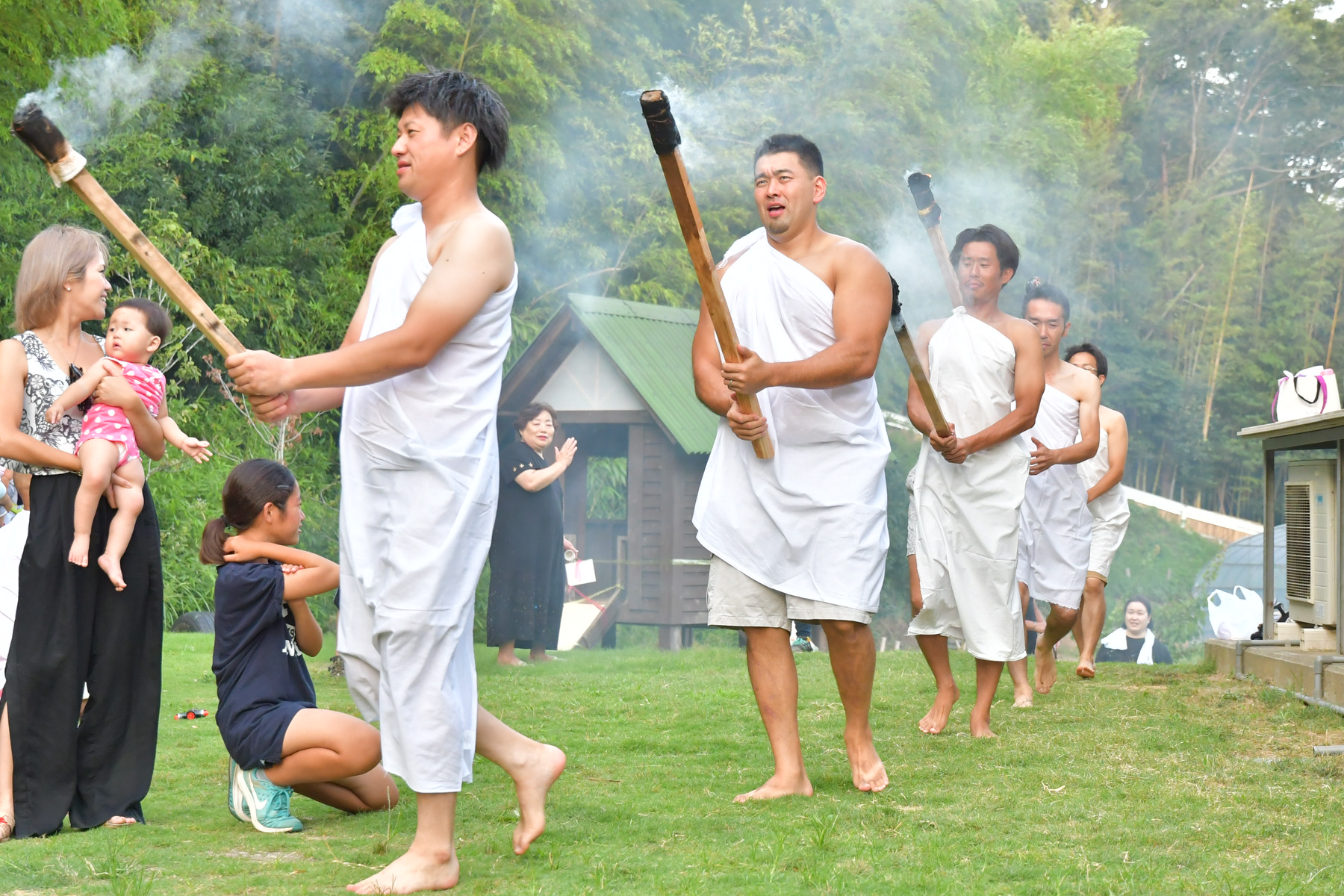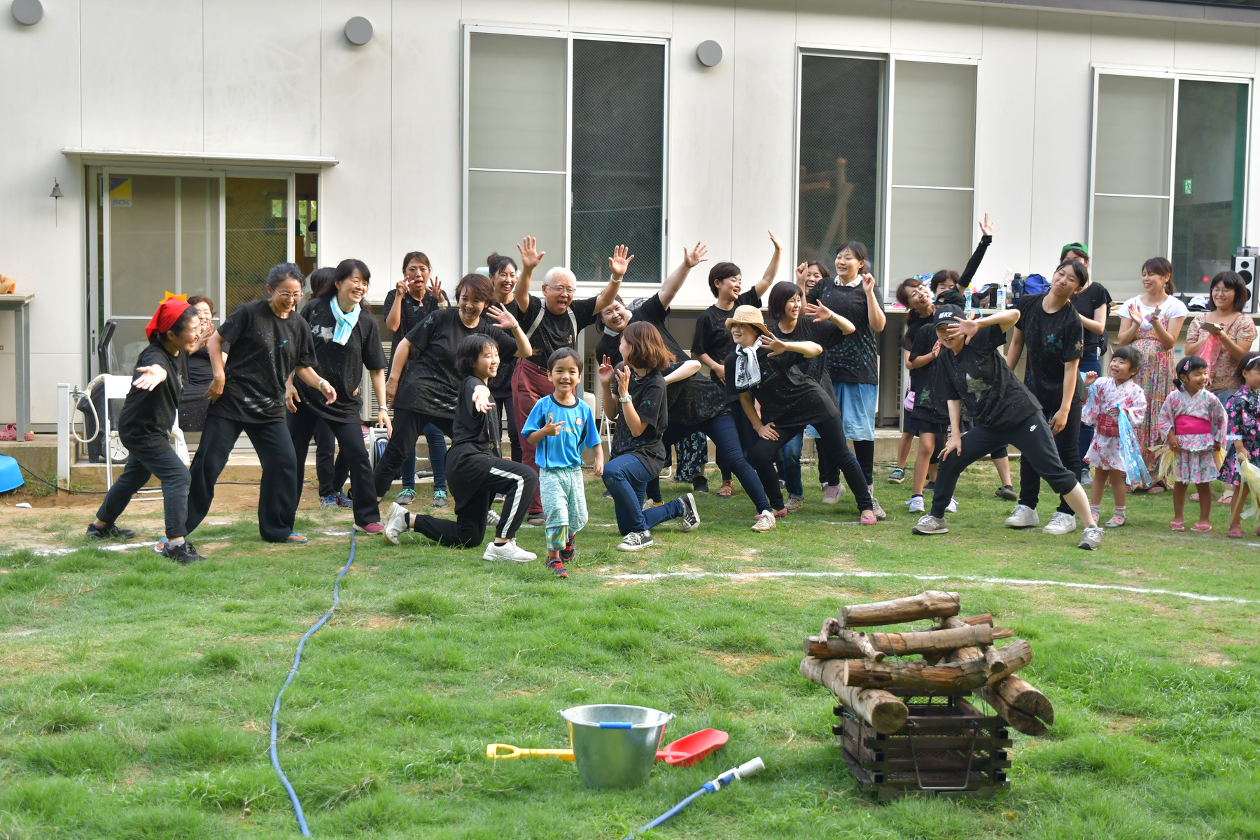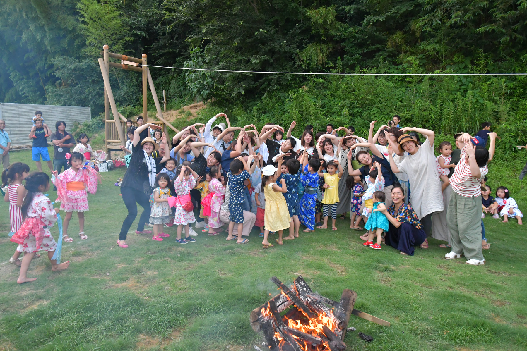 お祭りの後は裏の園庭に集まり、キャンプファイヤーです!