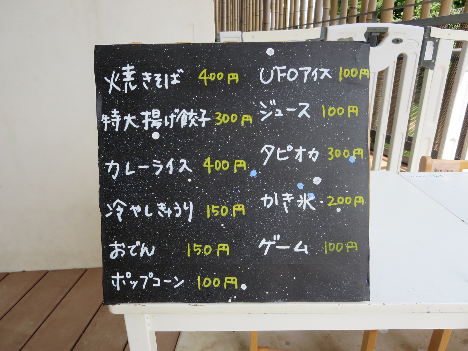 先生方は全員お揃いの手作りの銀河Tシャツで焼きそば屋さん!↓