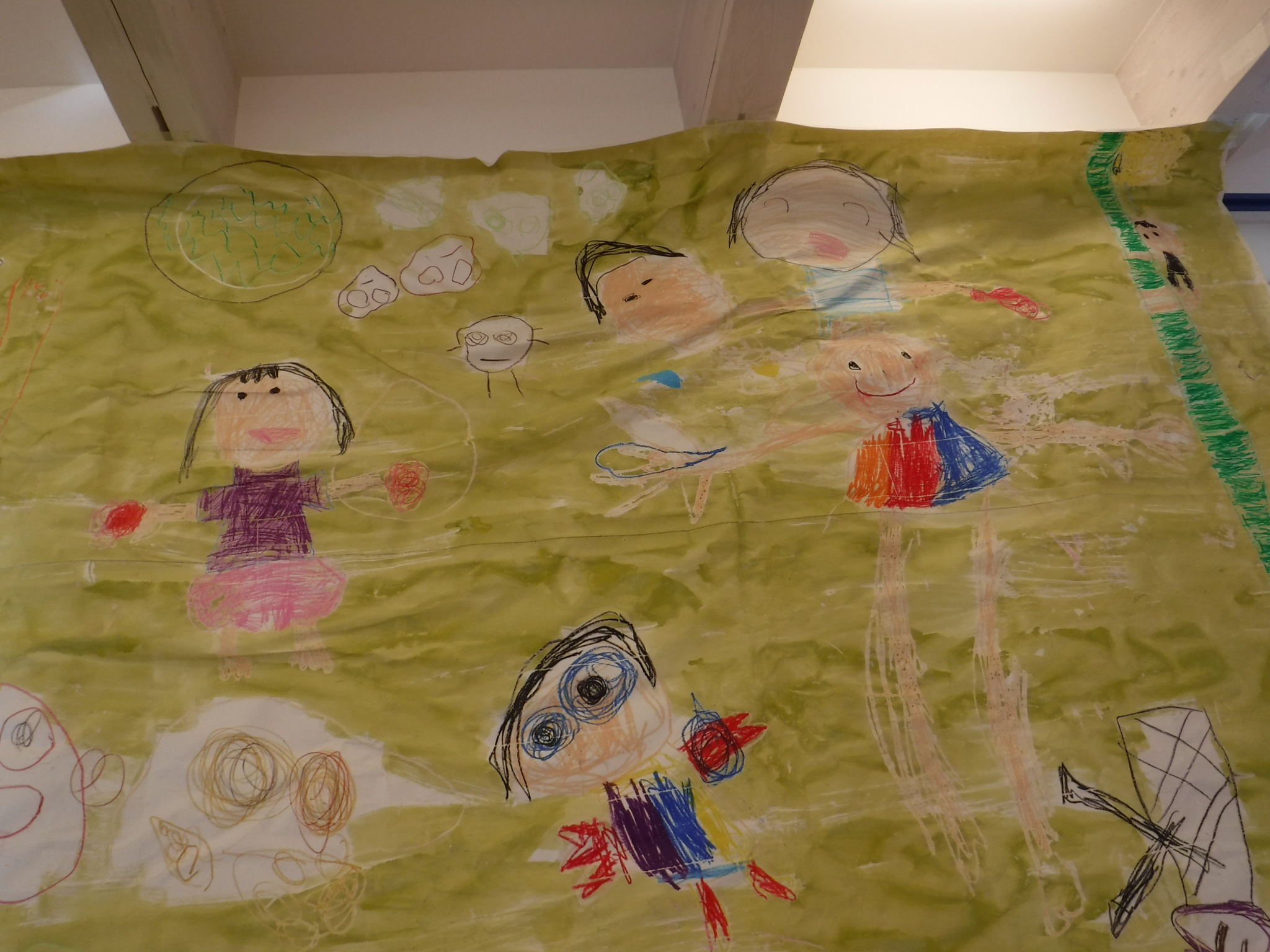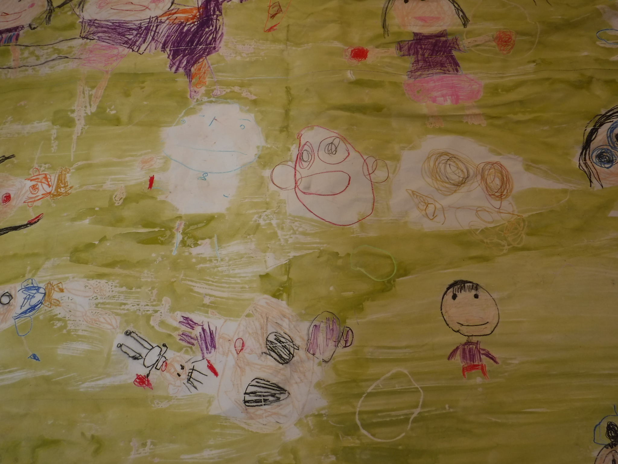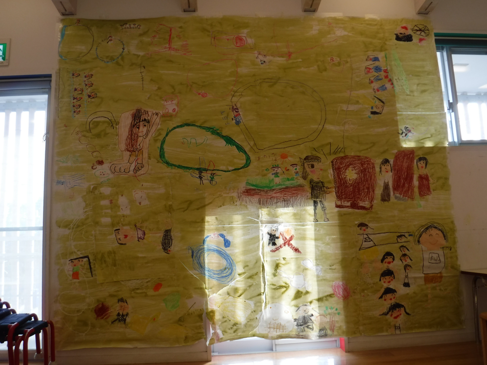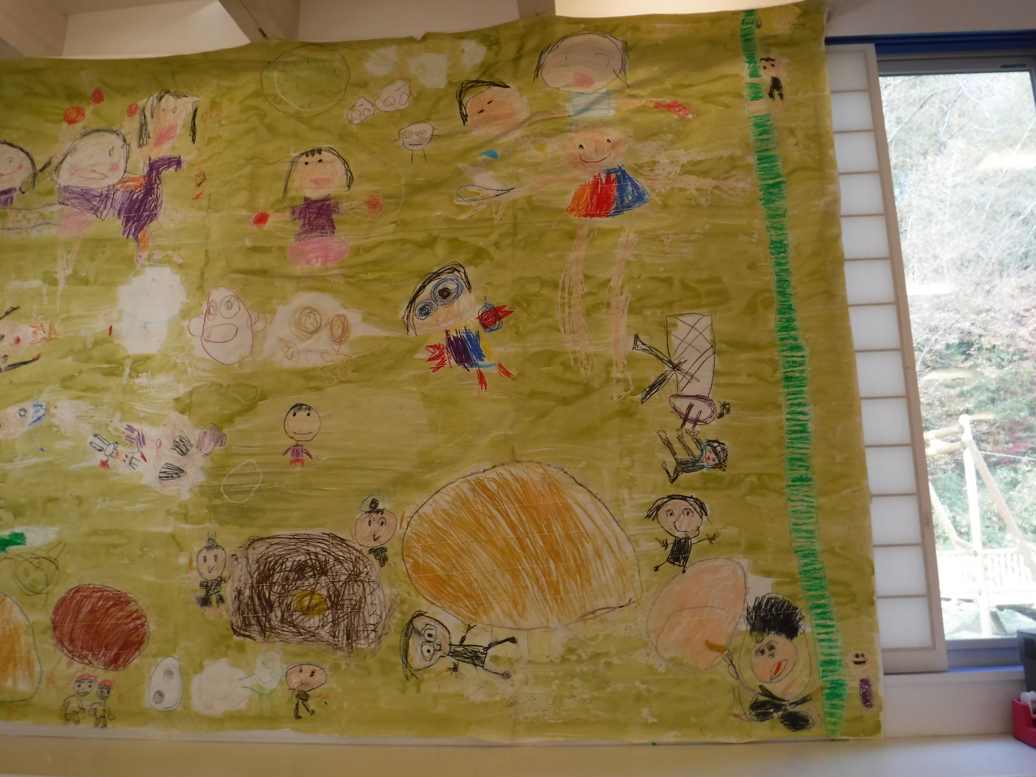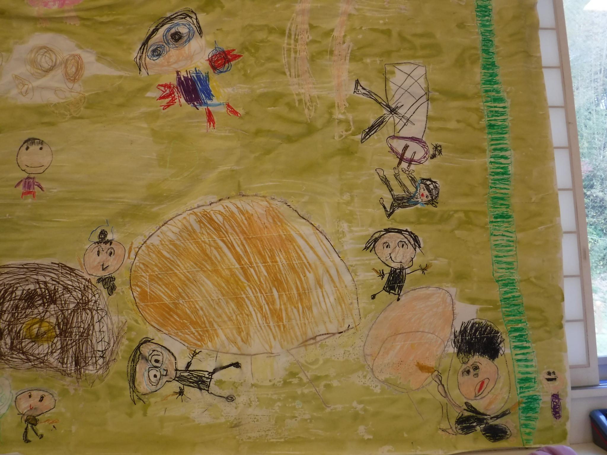 3・4・5歳児で、大きな一枚の紙に絵を描きました。