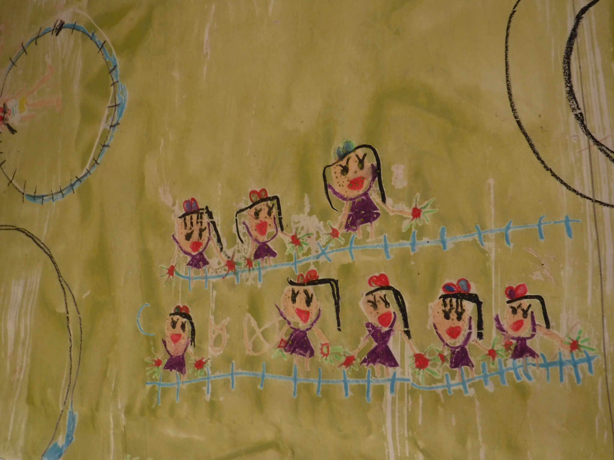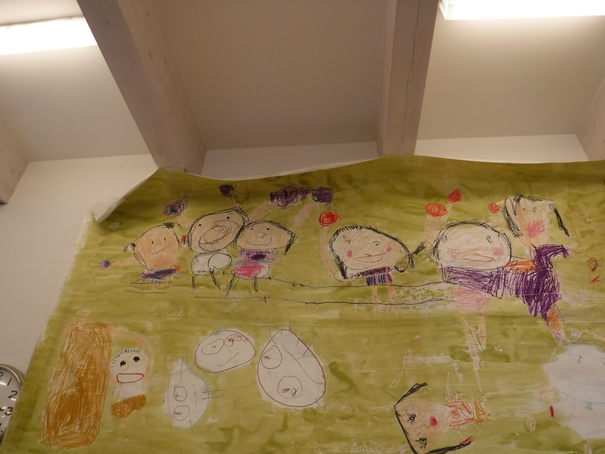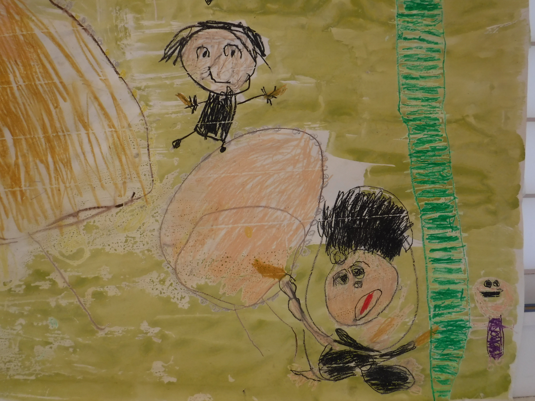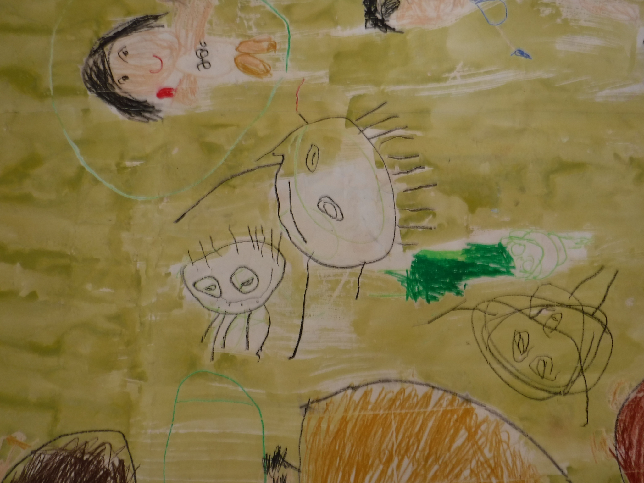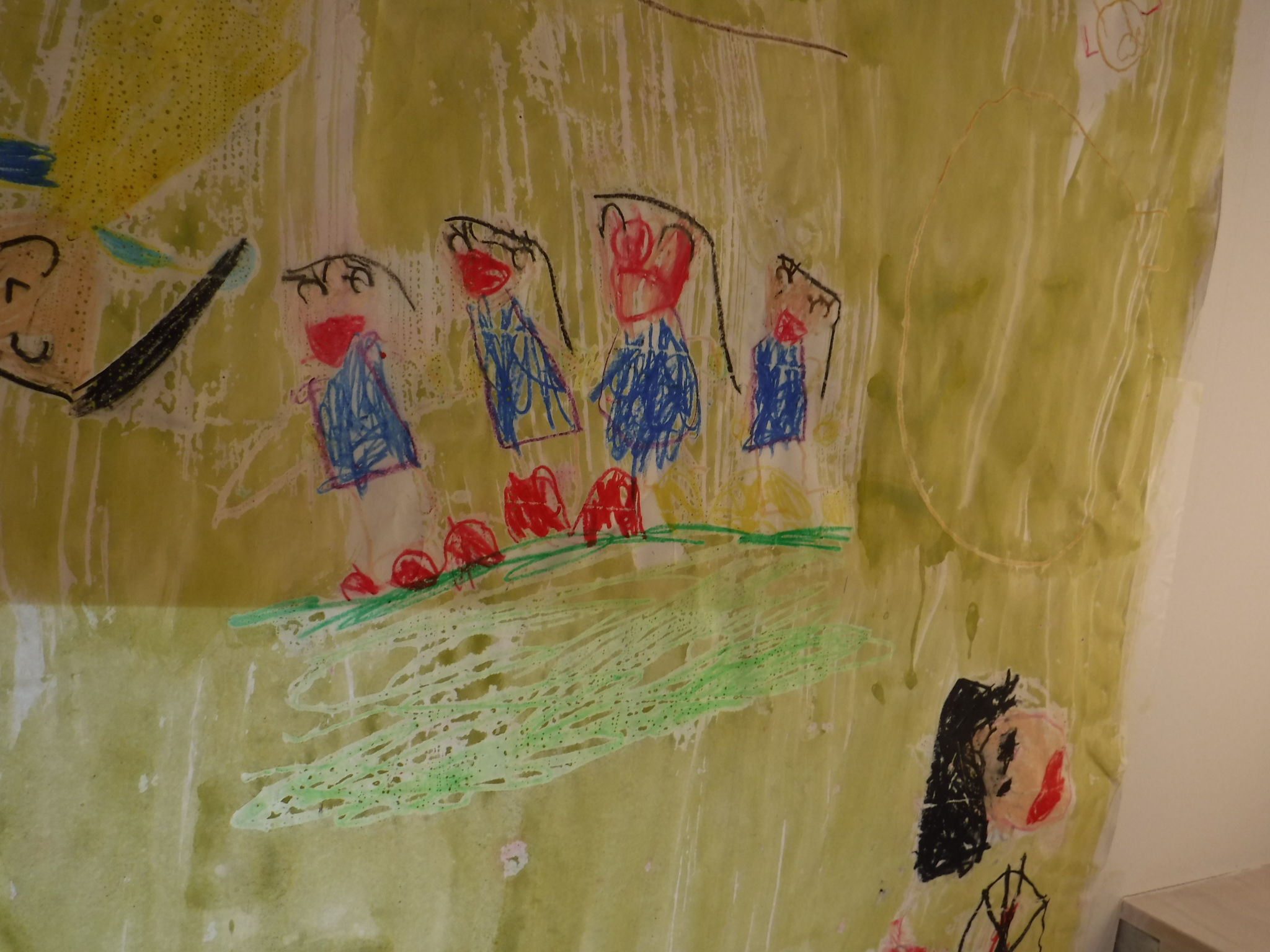 3・4・5歳児で、大きな一枚の紙に絵を描きました。