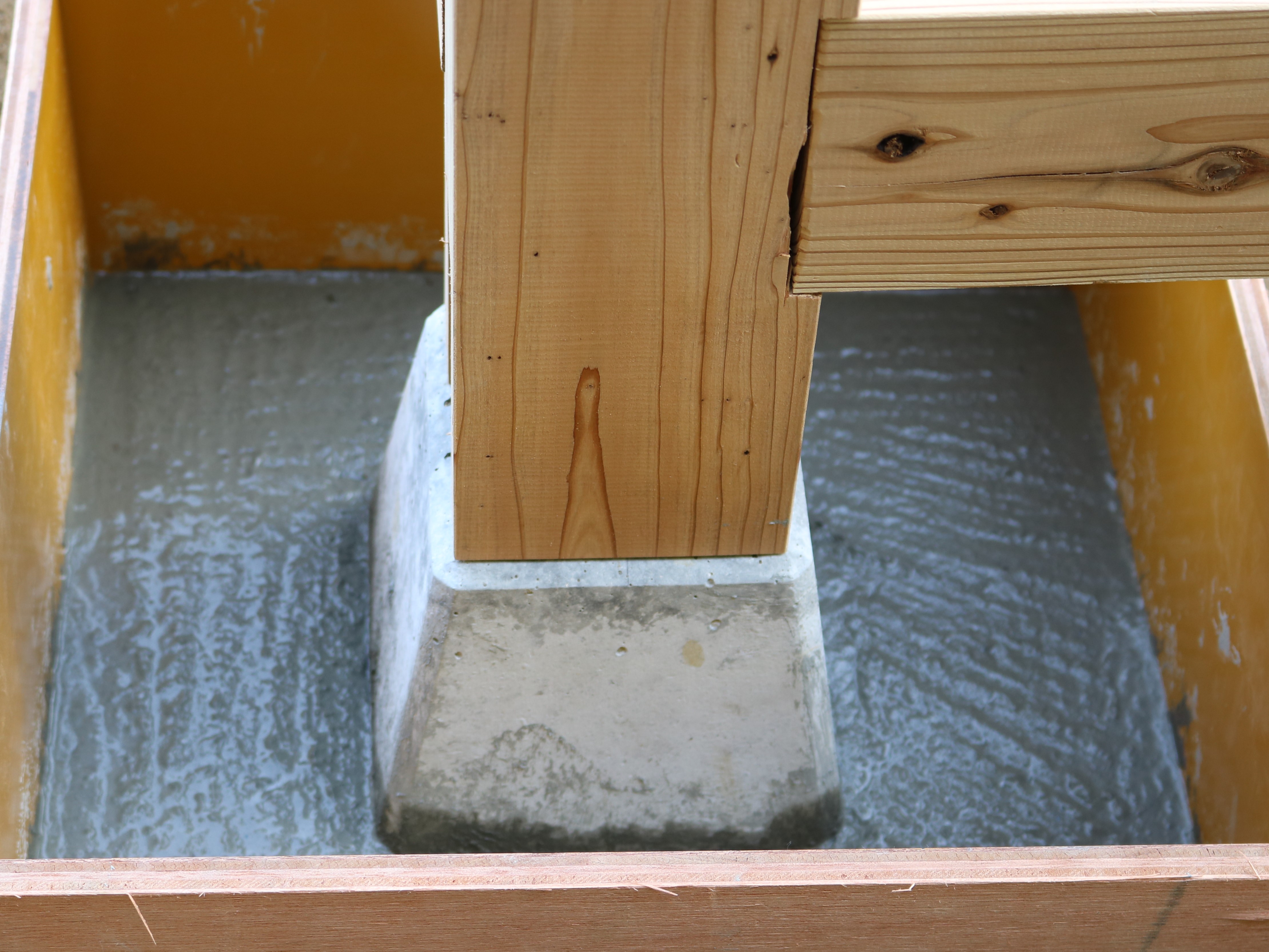 そろそろ疲れも見えてきた私ですが、今日も8時に集合。ALSOKは、しっかり解錠して、トイレの為に園庭側オリーブのサッシを開けました。今日も作業は柱の上の部分の補強のための8本の3寸5分の角材を入れる工程からでした。今日のFMラジオは、’TokyoFM’。昨日は、´BayFM’だったけど…。昼は、ツナオニオンサンドとコロッケバーガーとコーヒーでお腹がいっぱい。親方は、”大した仕事してないから腹が減らない!”と言って、コーヒーだけ飲んでいました。(いえいえ十分していましたよ)親方は、全ての補強が終わると、今度は斜めの筋交いに同じ角を使って4本の補強を入れていきました。私は、沓石の周りに入る35㎝の黄板の囲いが入るために、スコップで土を削り、沓石と地面が水平になるように均しました。(「趣味は?」と親方に聞かれ、”マラソン、バイク、ギター、絵画、山登り頂上でお酒”と答える。親方はサーフィンだそうです。)それから、柱と沓石の間の隙間が空いている部分の地面と沓石の底の間にバールを突っ込み持ち上げて、ハンマーで土を叩き、沓石と柱の底の接点を少しでも大きくすることで支える点が大きくなるので強度が増すようです。スコップで周りを掘ったのと、這いつくばった姿勢になった為か、腰が少々痛くなってきました...昼が大分回った頃でやっと、3人の弟子たちが到着しました。3日連続の出勤で、申し訳なく思う、疲れも出てきたであろう‥昨日より遅めの到着になりました。それでも3人は、父ちゃんの道具や材料をおもちゃがわりにして、遊んだりしていて、さすが、親方の弟子たちでした。