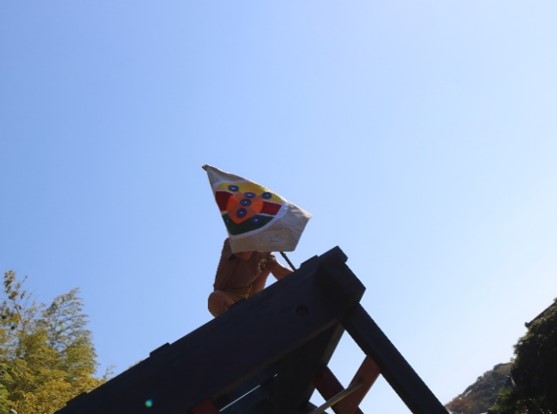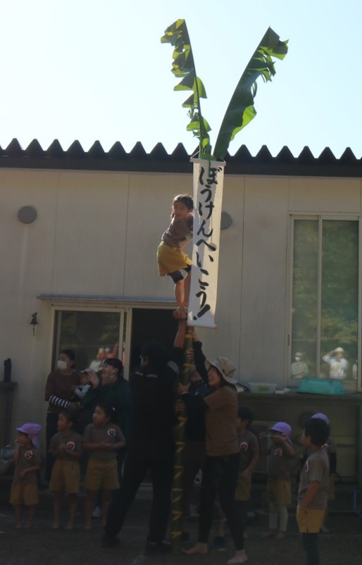 「 吉見光の子探検隊のシンボルマークの旗を、てっぺんに掲げます。」