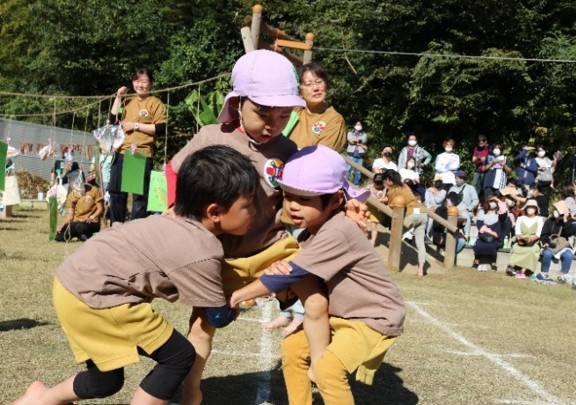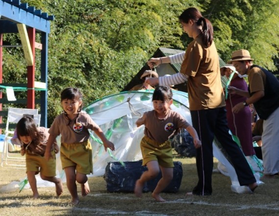 ―― さて、今回は、運動会というよりは、運動を取り入れた「お祭り」的な要素が強かったように思います。担当の先生たちが中心になって、アイデアを膨らませ、最初から最後までひとつの物語の中の、1人のキャストとしての、1人ひとりの子どもたちが、それを演じきった喜びが大きかったのではないでしょうか? それは、皆で力を合わせて「宝物」をゲットしに行く、という一つの目的を目指して動いたことによるものでしょう。コロナ禍で、みんなで一緒に身体を動かすことができなかったこの時期に、楽しみながら今回のような会が、できたことに感謝しつつ、また次の機会には、また、違った形の会を、お見せできることと思います。