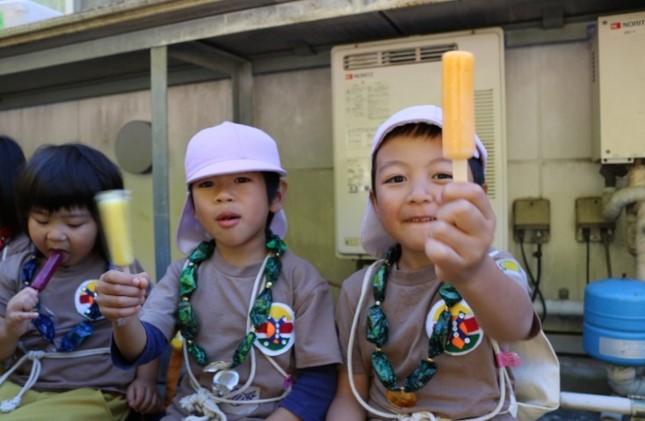 ・・・ 仲直りのしるしに、隊長 (園長先生)から、アイスキャンディのプレゼントで~す。