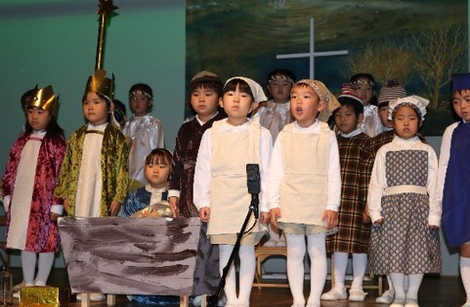 「吉見光の子」の クリスマス会は、年間行事の中でメインイベント。その中でも代々受け継がれてきた(衣装、歌、セリフetc.)降誕劇。