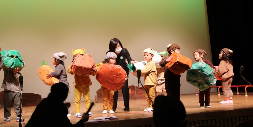 ・・・大きなニンジンを、それぞれの動物に扮した子どもたちが、