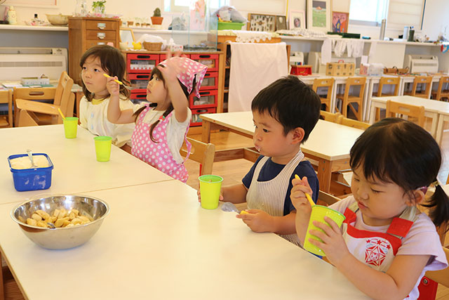 吉見光の子モンテッソーリ子どもの家では、モンテッソーリの活動(モンテッソーリではお仕事と呼びます)を通して、子どもたちが豊かな自分を創るお手伝いをしています。 2歳児になるお子様を対象に、プレスクールを行います。 ご一緒に、子どもたちの輝くような生命力に触れてみませんか。